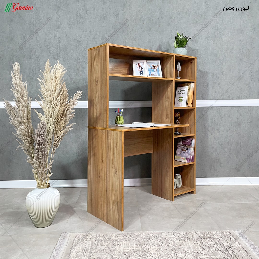 - دارای 5 قفسه در سمت راست و یک قفسه بزرگ بالای صفحه میز