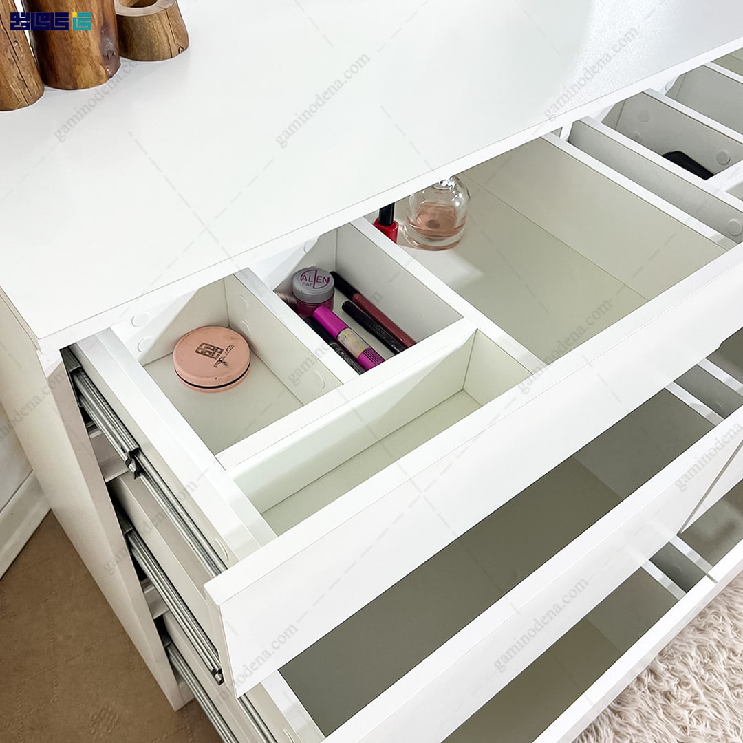 - در داخل دو کشو اول در هر کدام یک عدد نظم دهنده متحرک طراحی گشته که قابلیت چپ و راست شدن را دارد.
