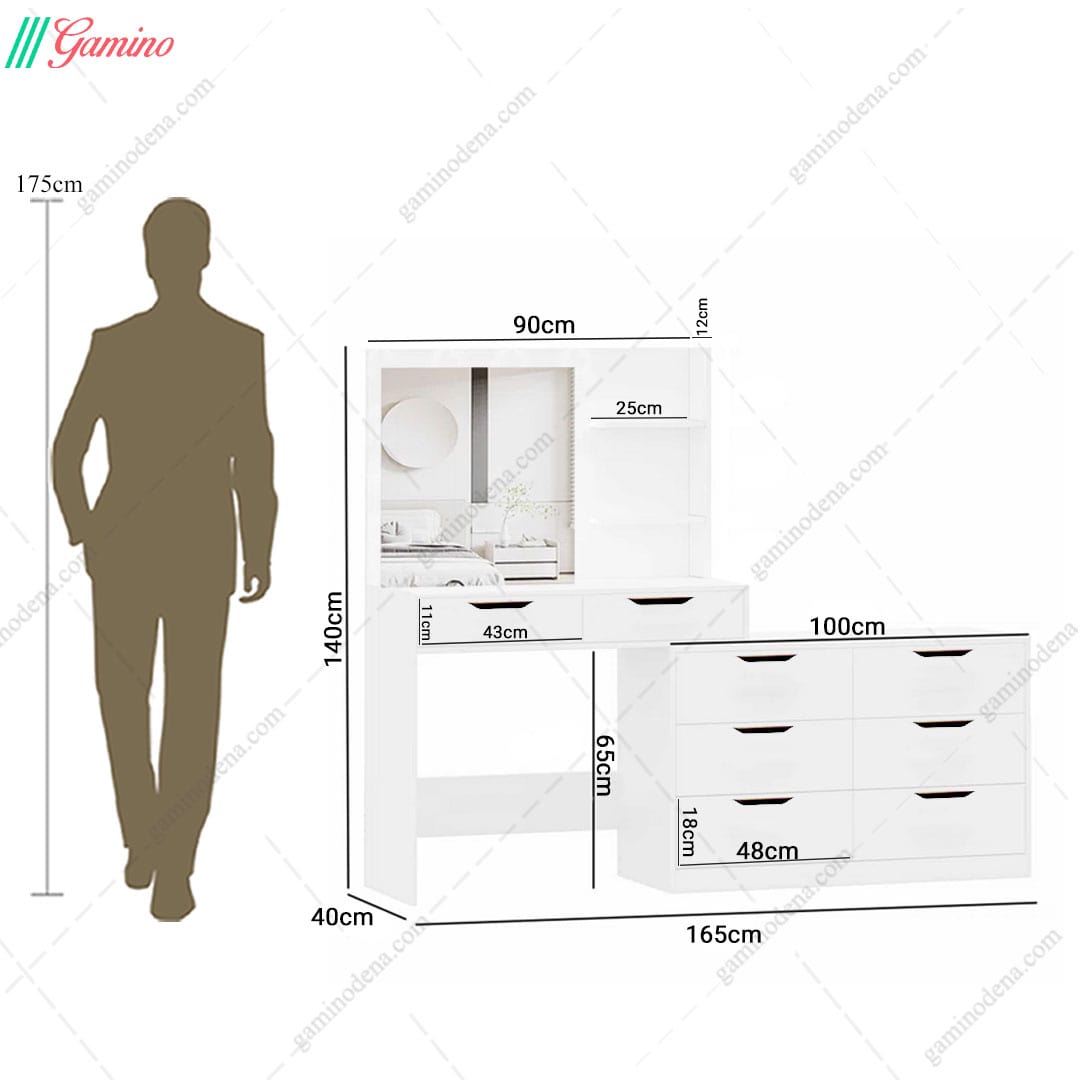 ابعاد میز آرایش: عرض 165 ، عمق 40 ، ارتفاع 140 سانتی متر