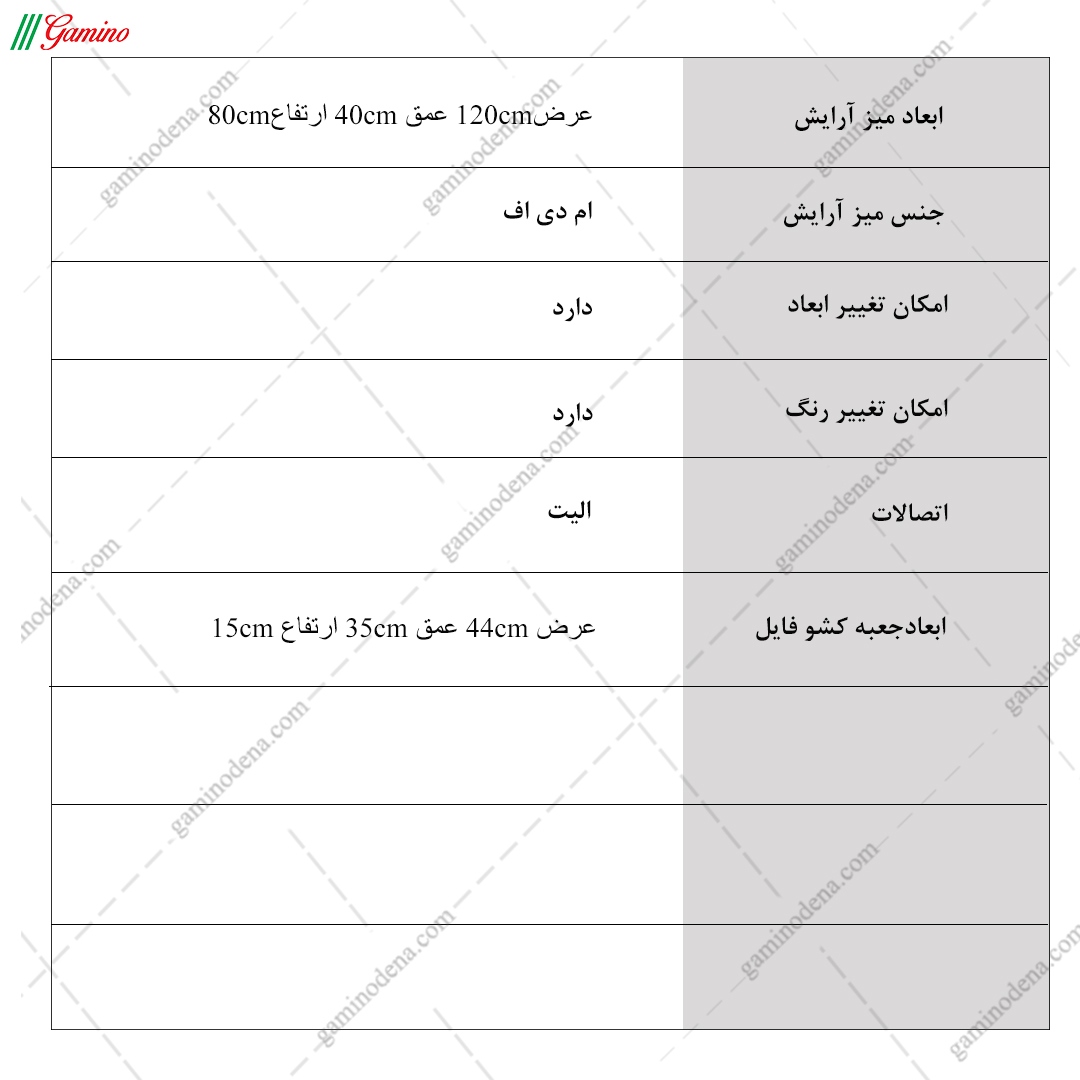 پاسخ: به دلیل اینکه تمامی محصولات، تولید خود گامی نو دنا میباشد برای میز آرایش نیز امکان انتخاب رنگ و ابعاد محصول توسط مشتری وجود دارد و میتوانید به صورت حضوری و یا غیرحضوری از طریق تماس با واحد فروش از این موضوع اطمینان حاصل کنید.