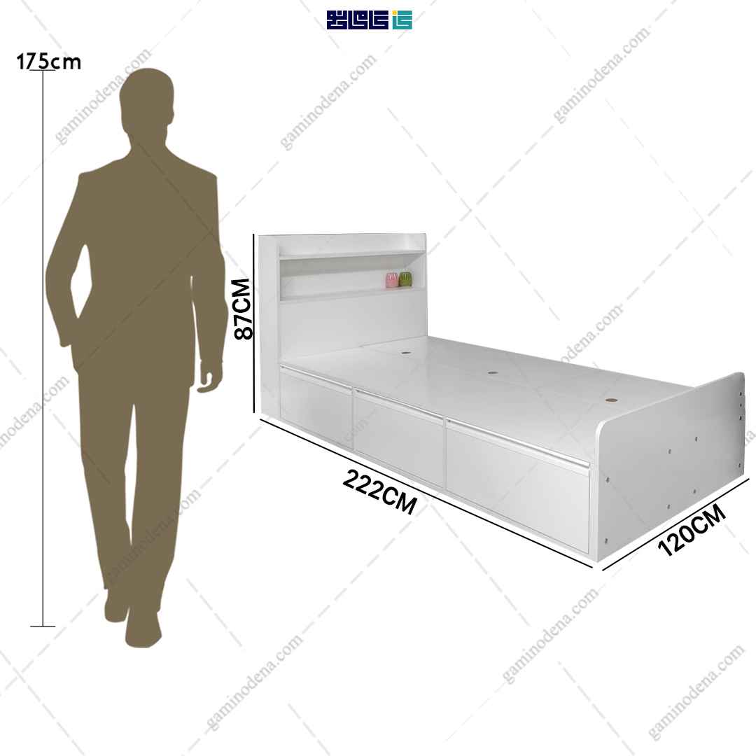 - ابعاد تخت : عرض 120 * طول 222* ارتفاع 87 سانتی متر