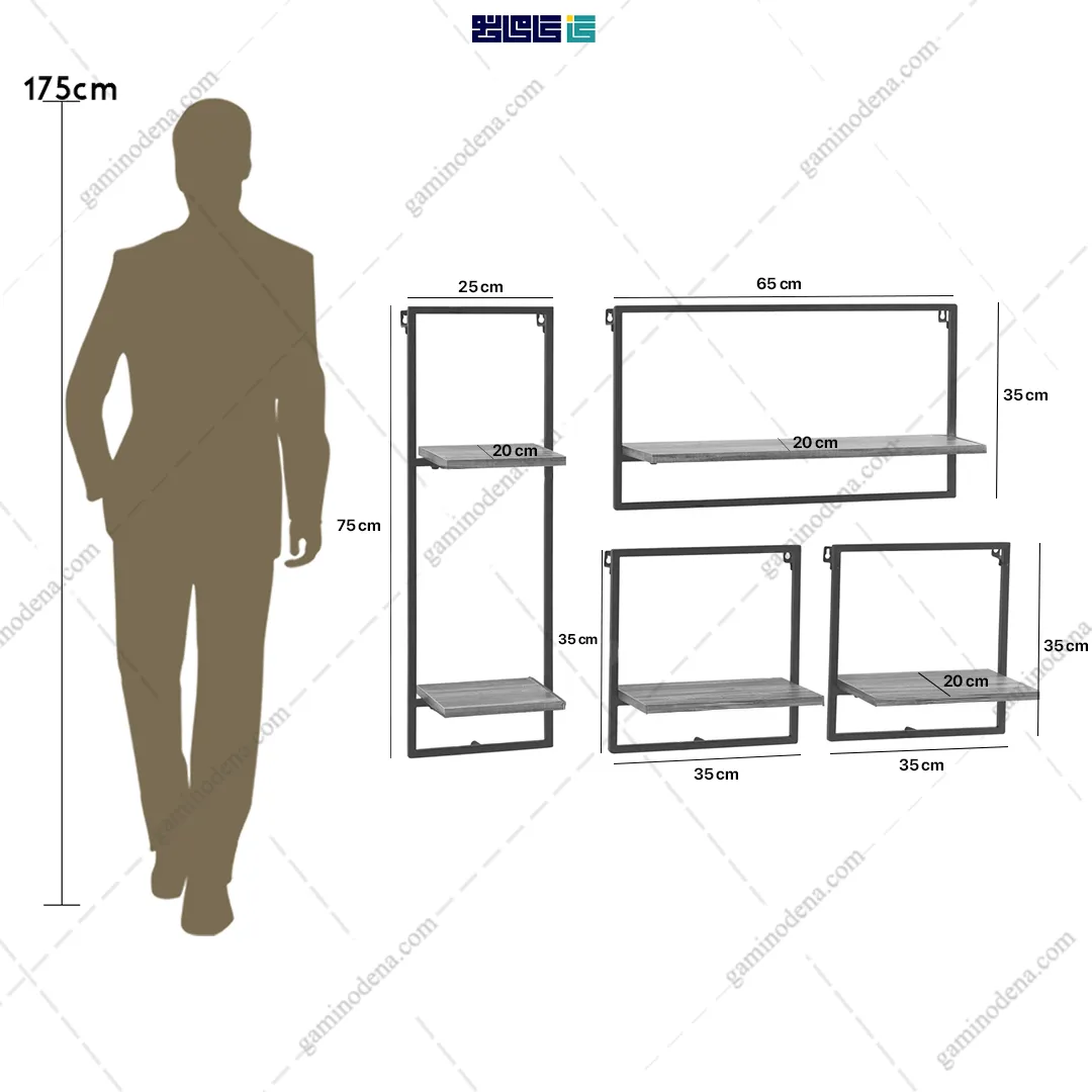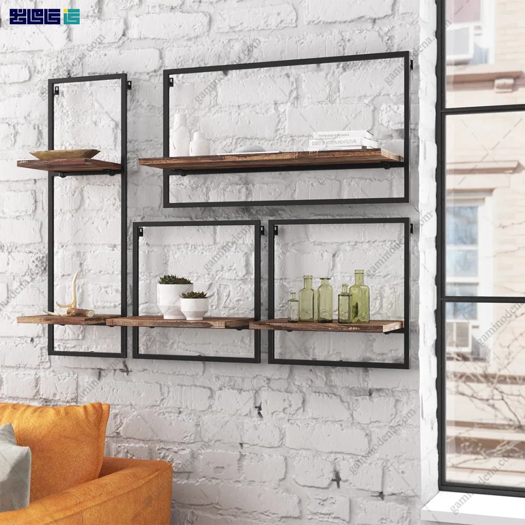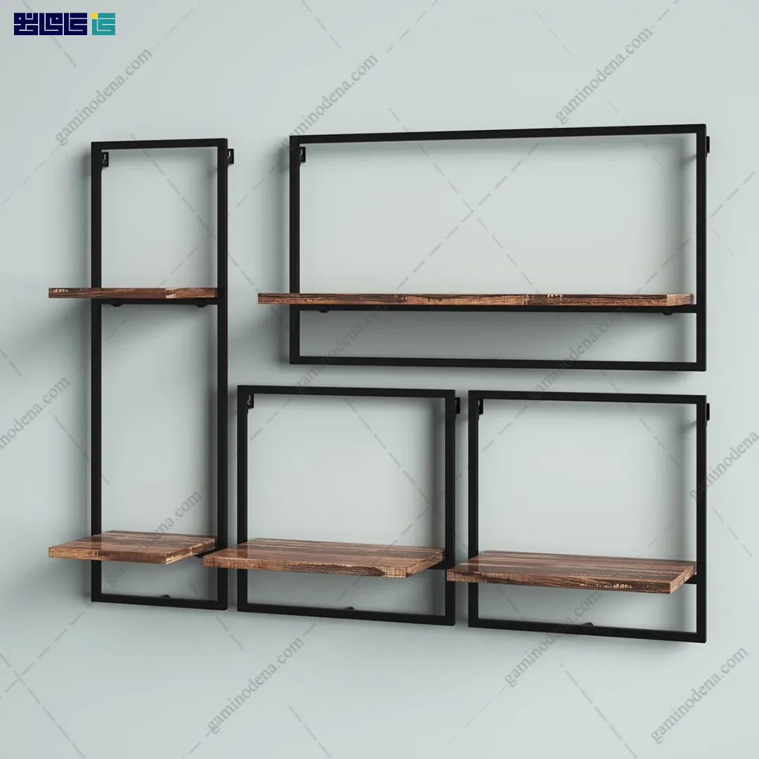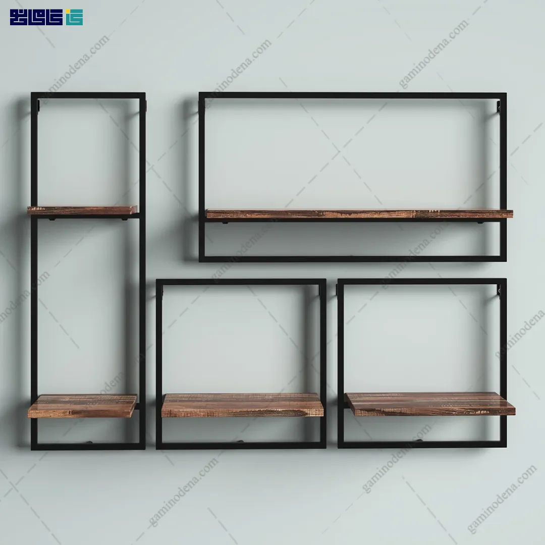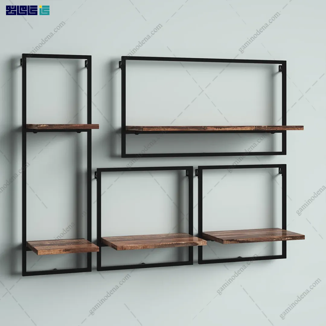 شلف دیواری چوبی فلزی ساده مدل الماس