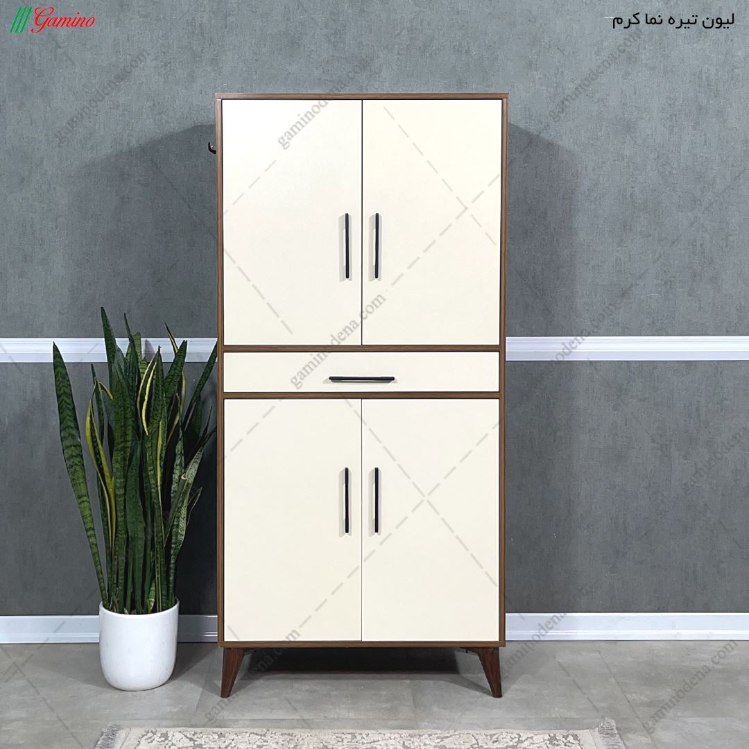 - درون این جاکفشی نیز در بخش بالا 3 طبقه قرار داده شده است که آن را به 4 قسمت تقسیم نموده
