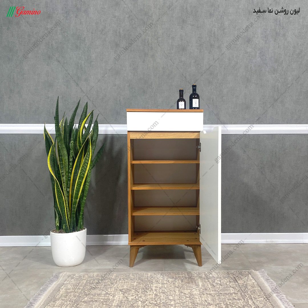 شما عزیزان می توانید این جاکفشی مدرن و زیبا را با دیگر لوازم منزل خود ازجمله؛ میز کنسول آینه ای، میز جلو مبلی جدید و یا دیگر لوازم خانه خود از لحاظ رنگ بندی و نما ست نمائید و از فضای بوجود آمده نهایت لذت را ببرید.