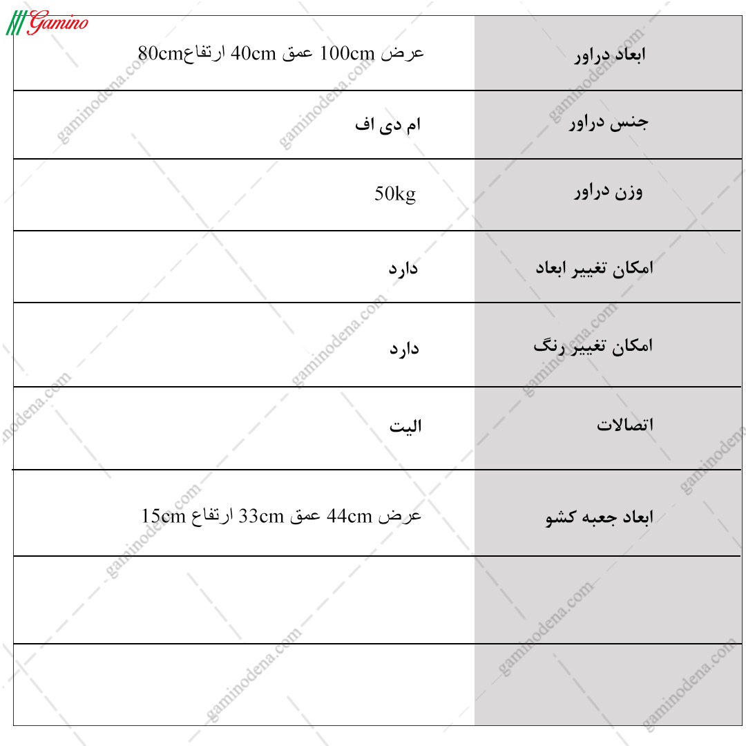 - ابعاد محصول : عرض 100 و عمق 40 و ارتفاع 80 سانتی متر