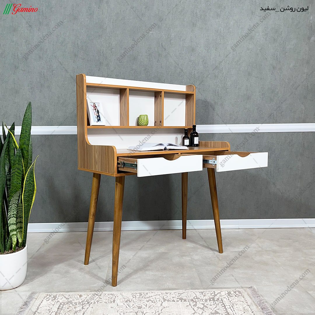 میز تحریر کتابخانه دار پایه چوبی مدل تابش