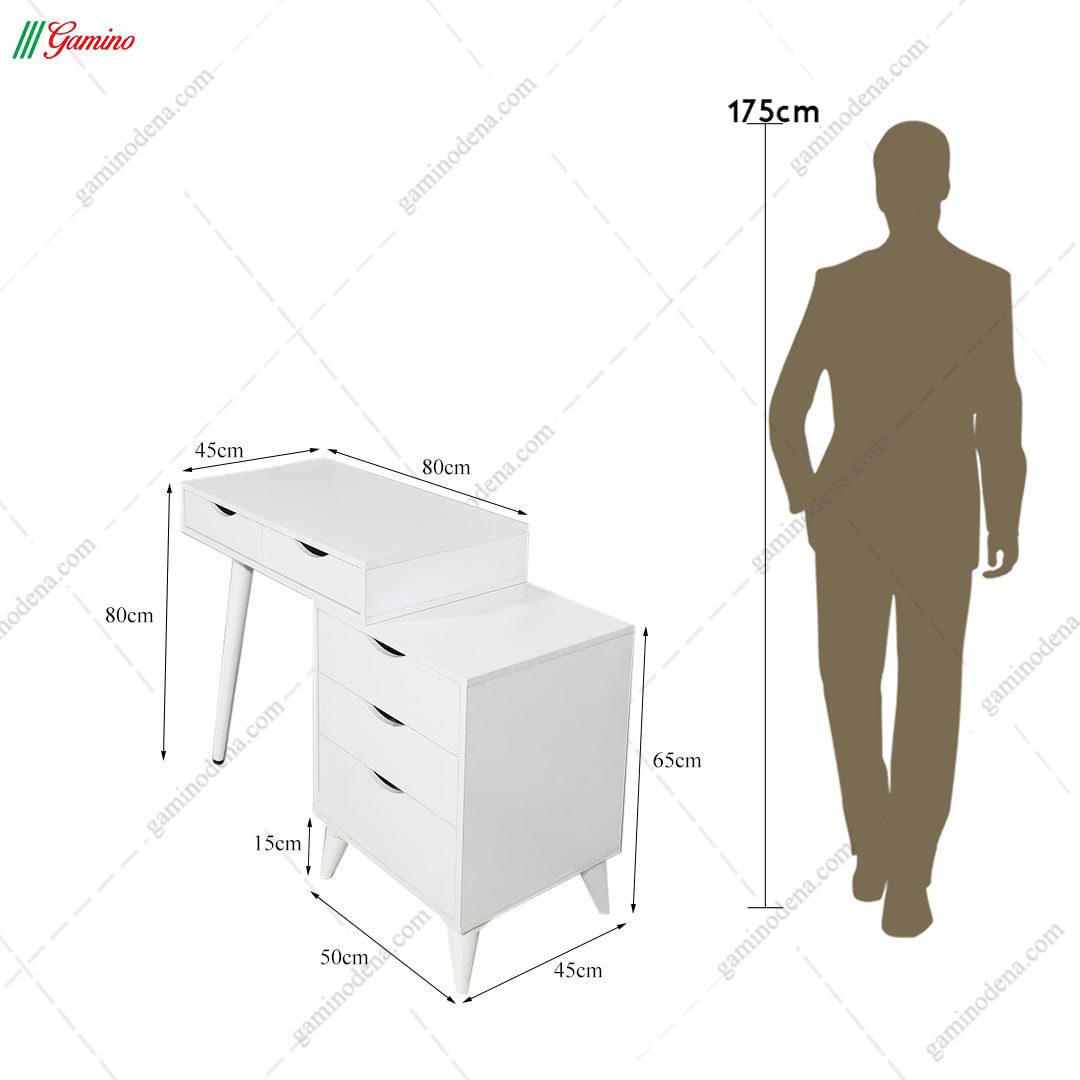 | ابعاد بخش ها | عرض میز: 80 سانتی متر، عرض فایل کشوها: 50 سانتی متر |
