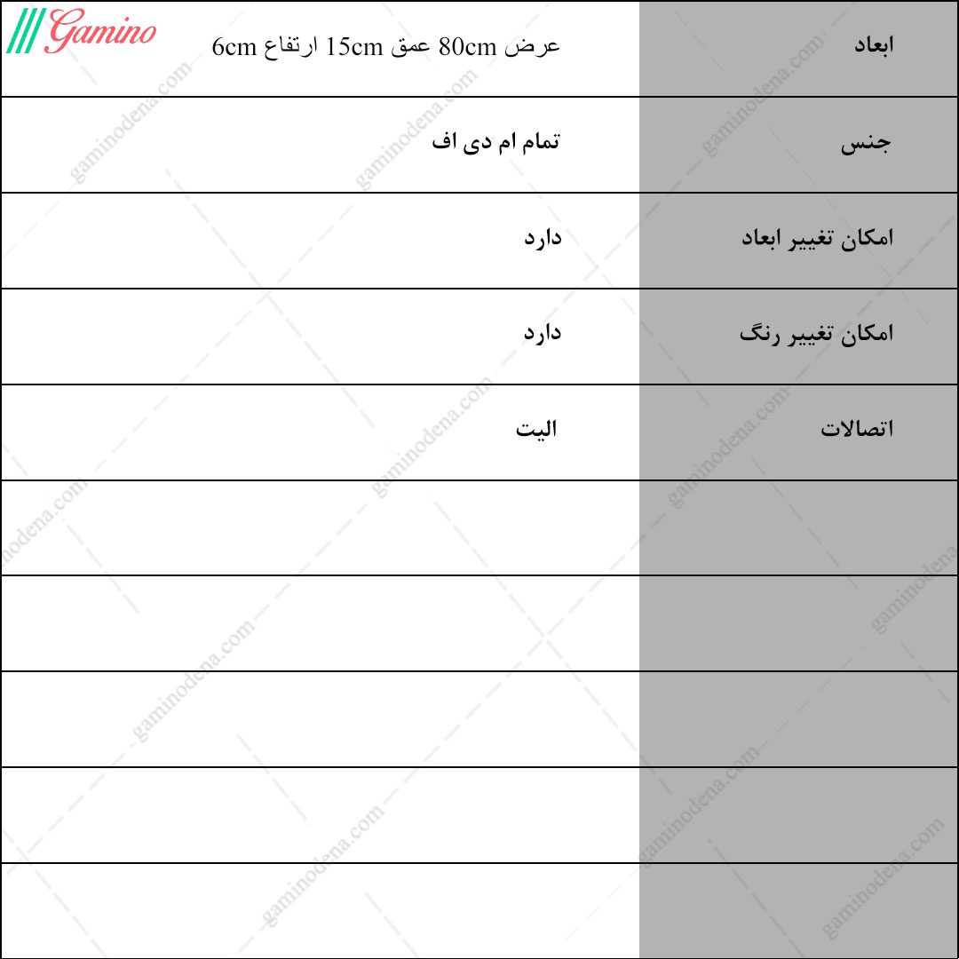 - ابعاد کلی محصول : عرض 80، عمق 15 و ارتفاع 6 سانتی متر