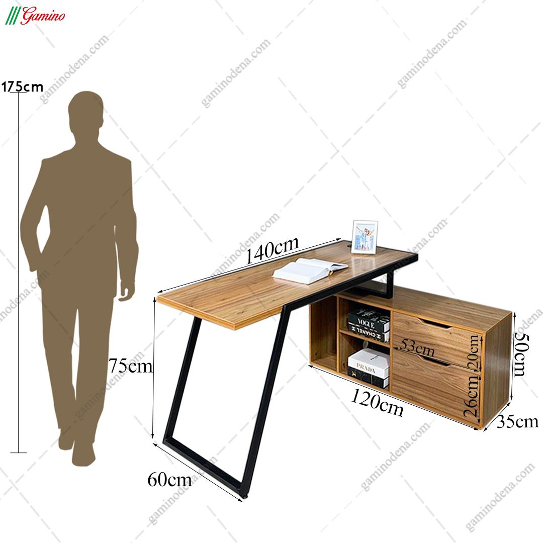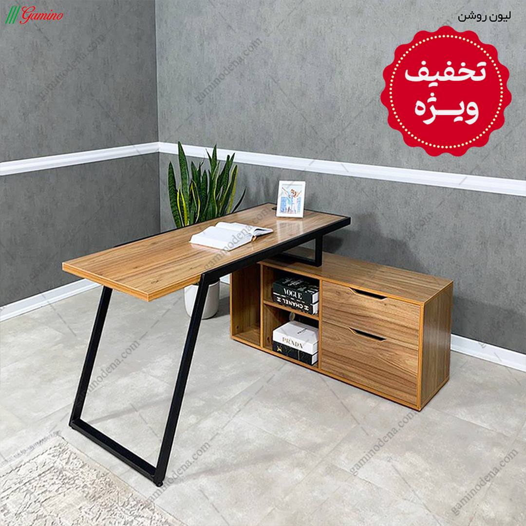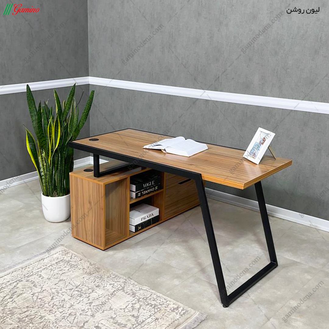 - این میز در دو بخش طراحی شده، یک بخش میز و بخش دیگر مربوط به کشو و شلف میشود که به صورت عمود به هم متصل میشوند