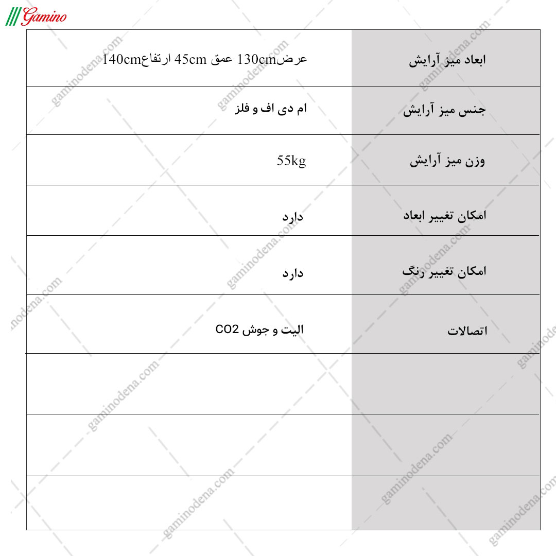 - دارای 3 قفسه یا شلف نزدیک آینه و روی میز جهت قرار دادن انواع لوازم آرایشی