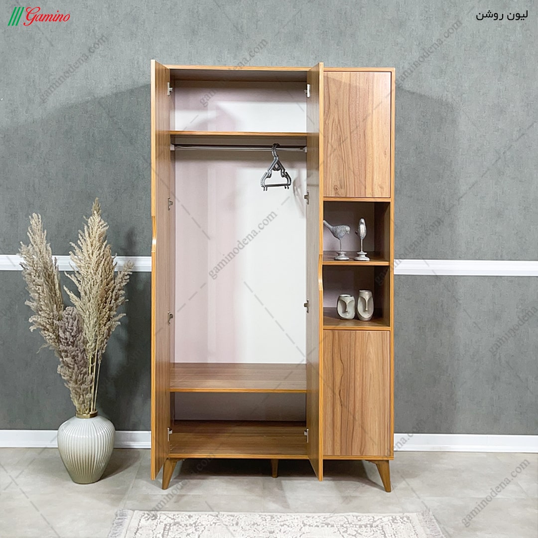- دارای یک رگال آویز و دو قفسه در داخل کمد