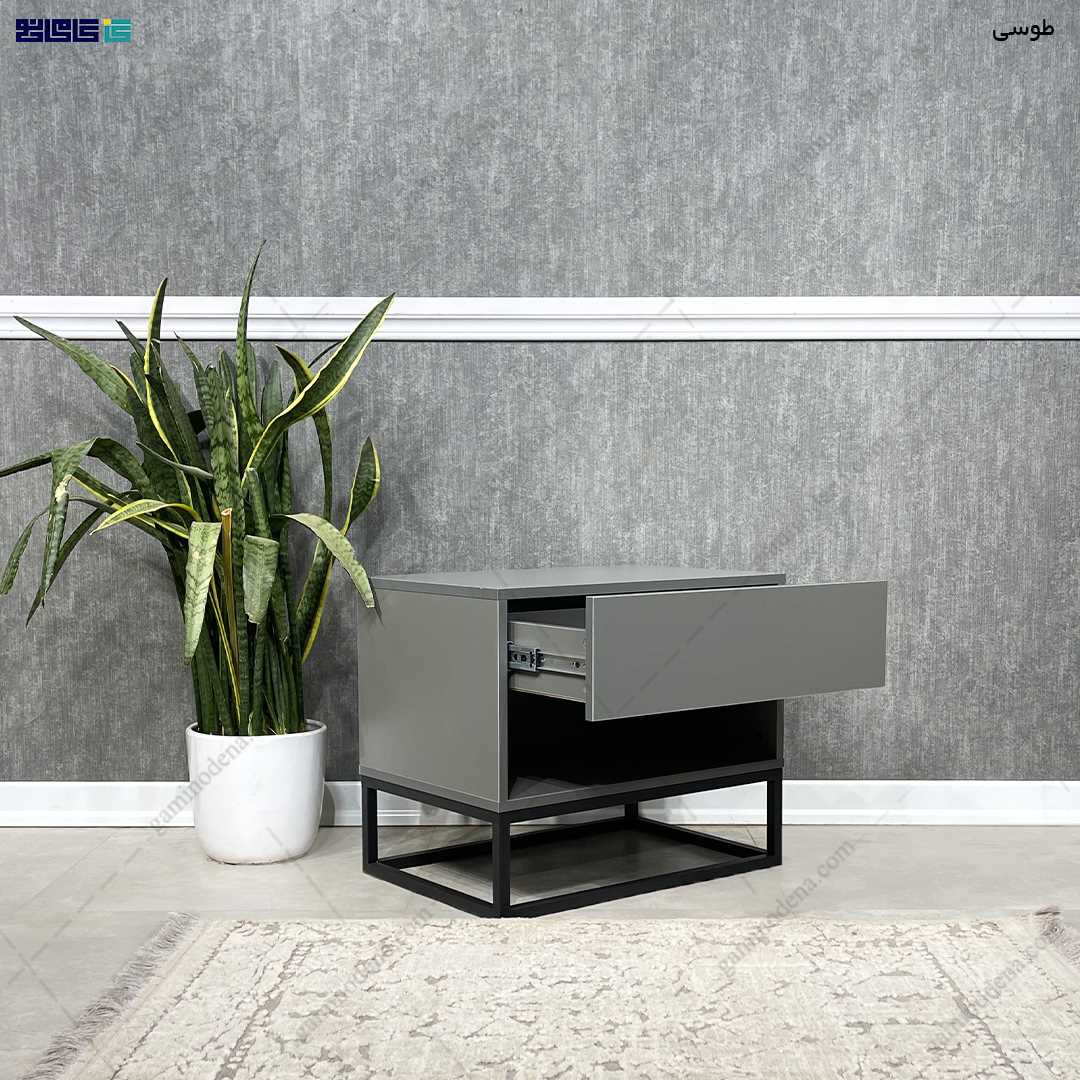 مهم: این محصول ترکیب رنگ پیشفرضی ندارد. رنگ تخت خواب این محصول (تمام لیون تیره و فلز مشکی) و رنگ پاتختی آن (تمام طوسی و فلز مشکی) است.