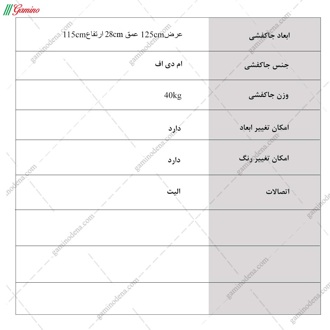 - ابعاد کلی محصول : عرض 125 ، عمق 28 و ارتفاع 115 سانتی متر