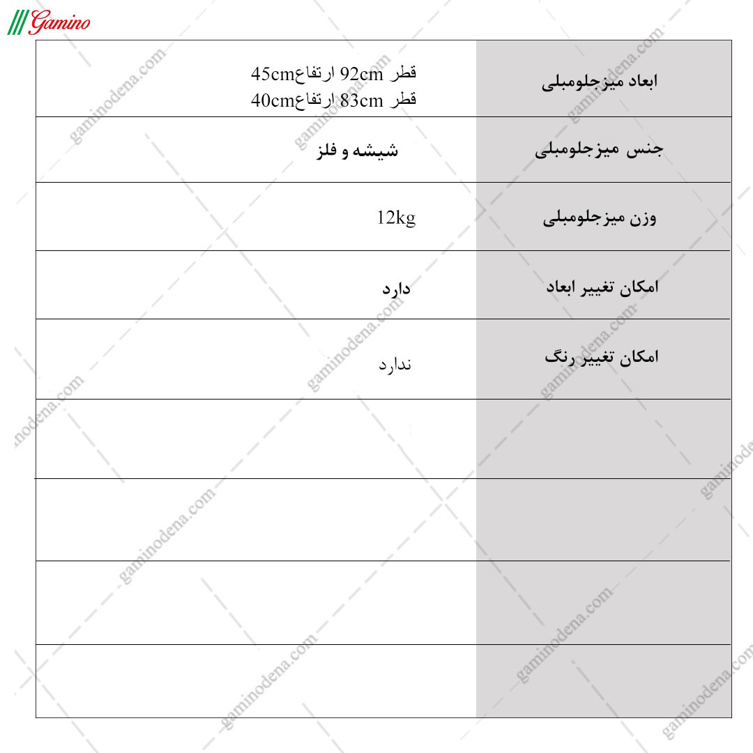 جلو مبلی بزرگ : قطر 92 ارتفاع 45 / جلو مبلی کوچک : قطر 83 ارتفاع 40 |