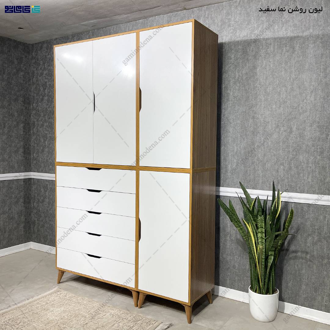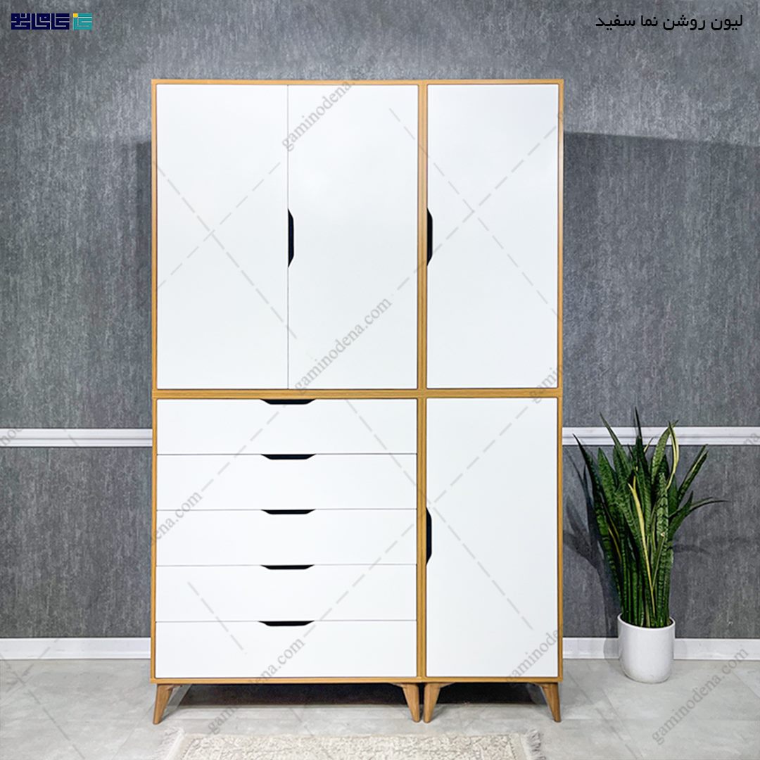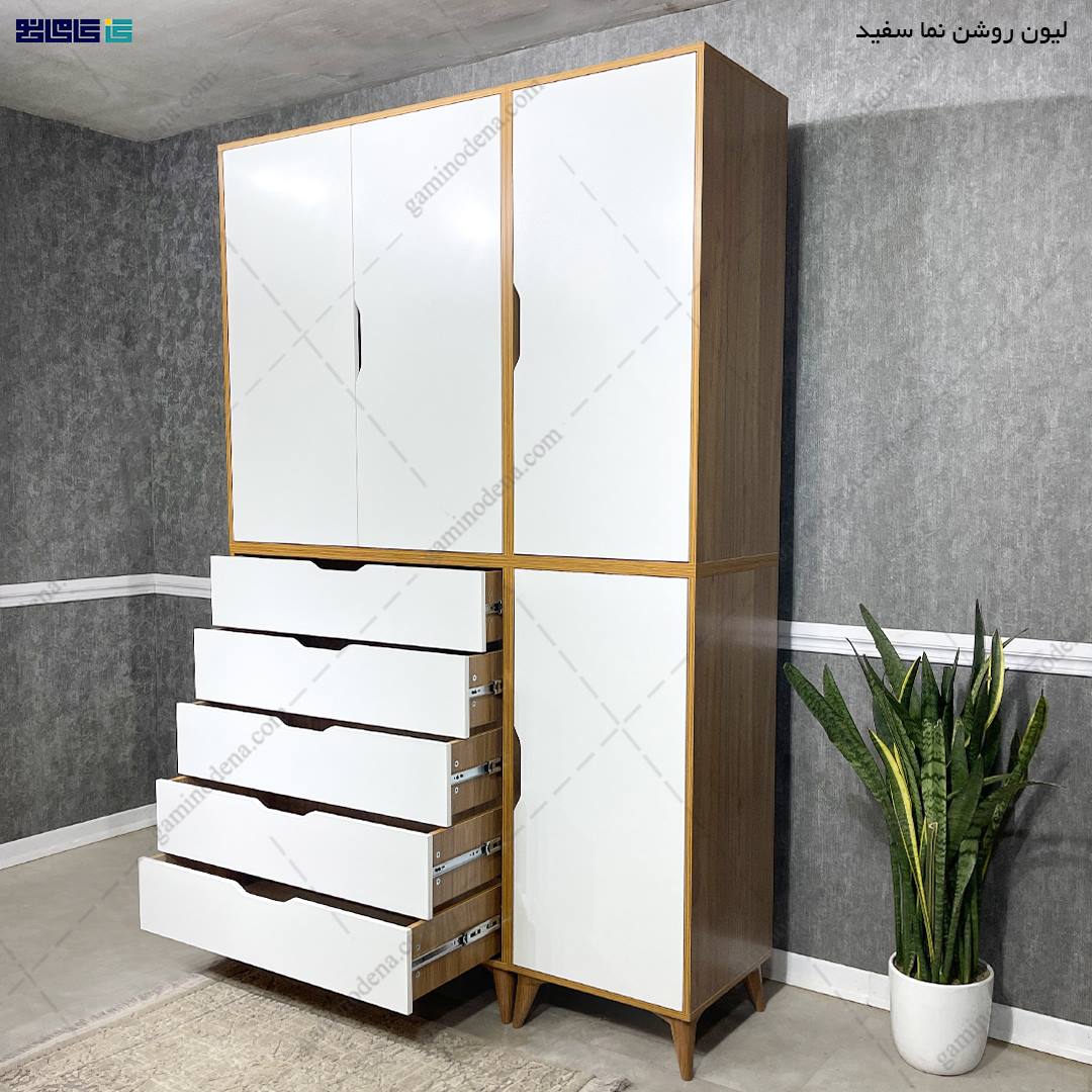 - رنگ بندی محصول : بدنه کار لیون روشن و نمای درب کمد و کشو ها سفید (قابل تغییر طبق کالیته رنگی)