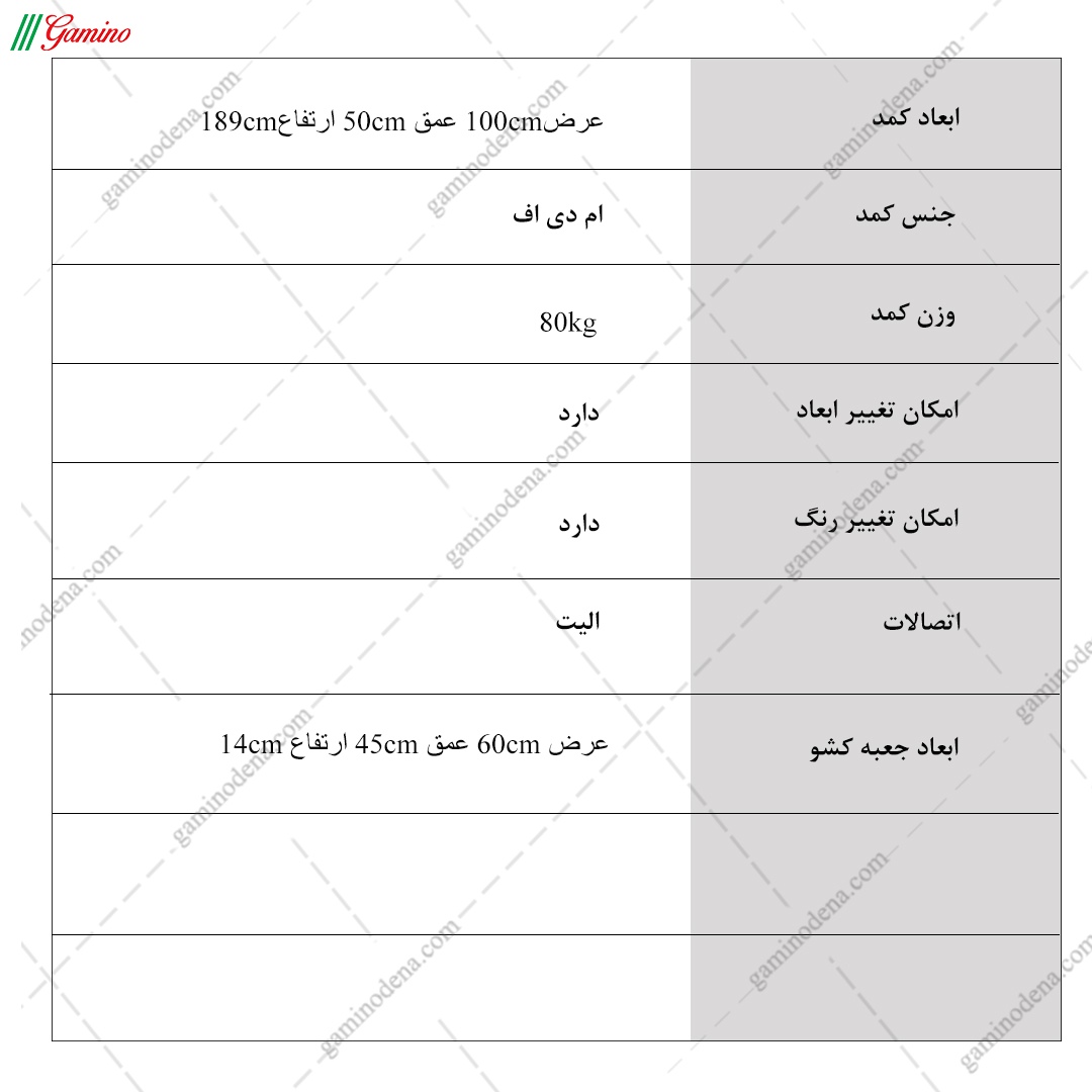 • ابعاد کلی محصول : عرض 100 ، عمق 50 و ارتفاع 189 سانتی متر